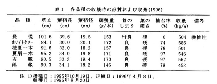 高知県農業技術センター山間試験場・山地園芸科 [連絡先]0887-72-0058 [部会名]野菜・花き・茶部会(野菜) [専門]栽培 [対象]葉茎菜類 [分類]普及