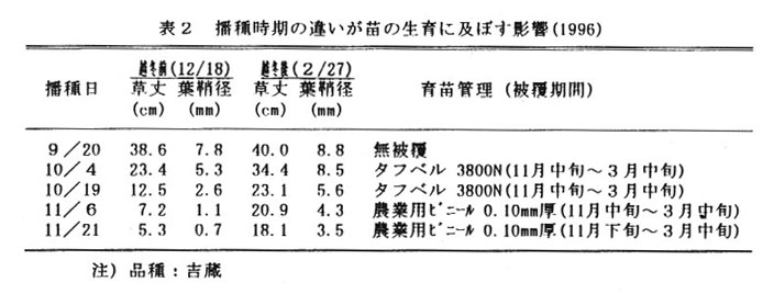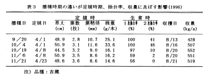 播種は、露地に10月中旬に行う(