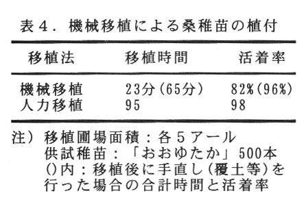 機械移植と人カ移植の能率の比較は、約1.5倍である(