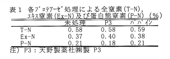- 市販プロテアーゼによって煮汁を処理しても、エキス窒素(Ex-N)はわずかしか増加しない(表1)が、冷却時にゼラチンのゲル化を防止するために必要な工程である。