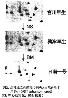 )。RLGS法は枝変わりばかりでなく、珠心胚実生で生じた遺伝的に極めて近縁な品種の遺伝子分析法として有効である。