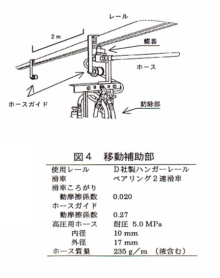 L:ホース長、Wh:単位長さ当たりのホース質量、μ:ホースガイド動摩擦係数、θ:傾斜角、g:重力加速度