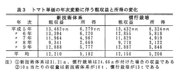 - 平成8年のトマト単価の低迷は外的要因のため、この年の収益性は除外して考えるべきである。