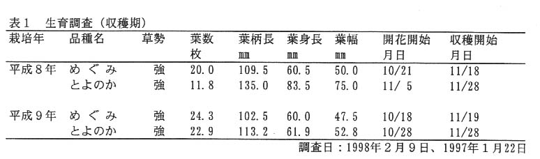 1)収穫開始時期は、普通ポット育苗で9月上句に花芽分化し、9月中旬定植では10月中旬に開花し11月中旬から収穫できる(表1)。
