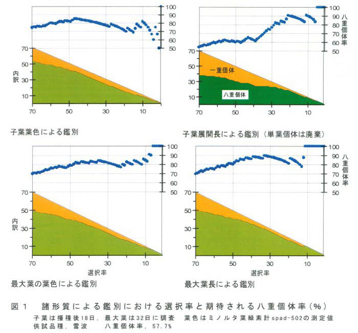 図1 諸形質による鑑別における選択率と期待される八重個体率