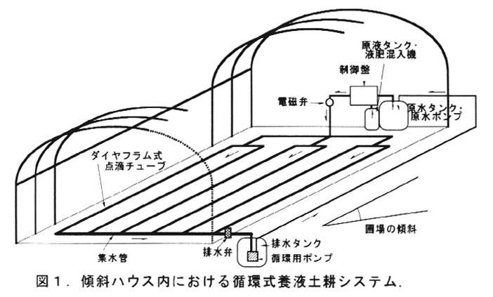 傾斜地ハウスにおける循環式養液土耕システム