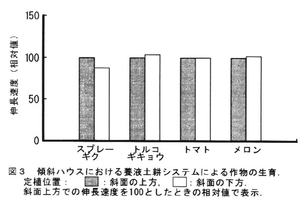 本システムにより,傾斜地ハウス内で野菜・花きを斉一に栽培できる(