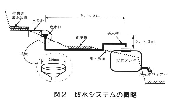 本取水法は、園内作業道整備園における雨水利用技術として適用する。