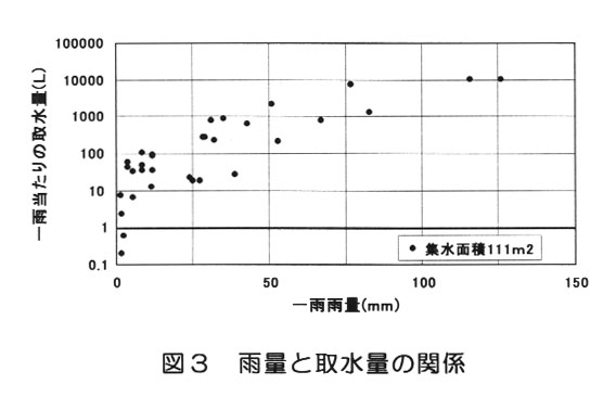 (面積の約45%は道路面等の非浸透域)の園地では、総雨量30~50mm程度の降雨により、容量800リットルのタンクが満水になる。