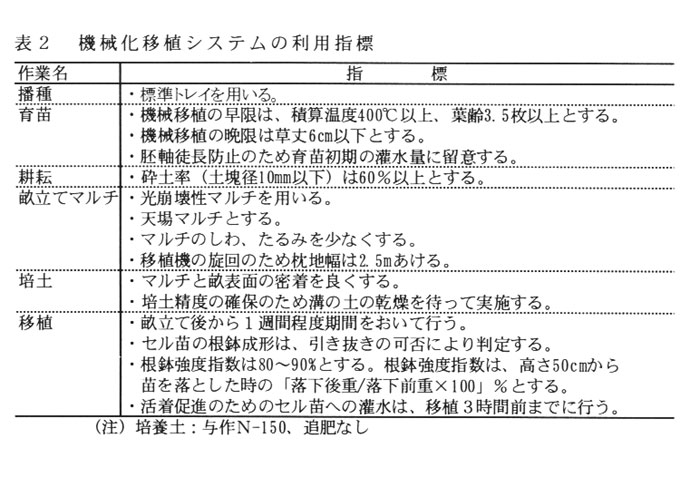 暖地におけるレタスの機械化移植システム