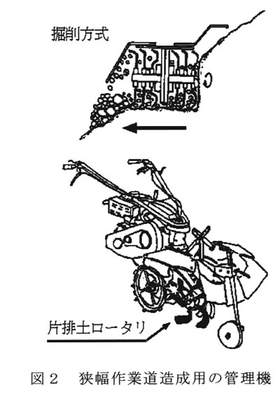 歩行形管理機を利用した急峻傾斜果樹園の狭幅作業道造成法