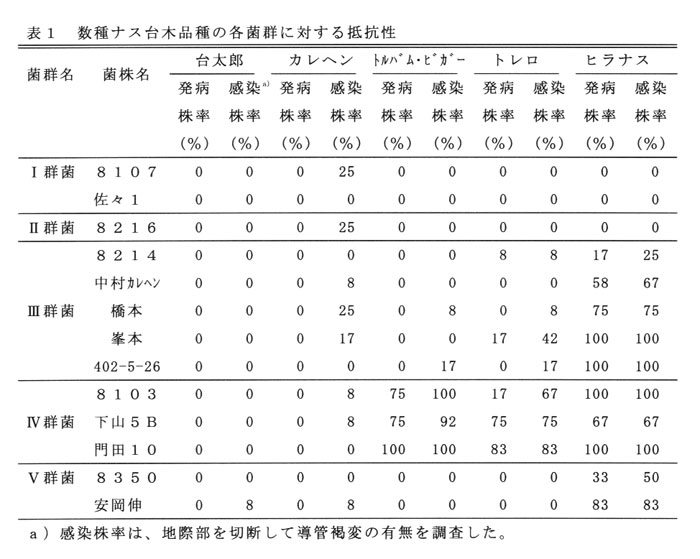 発表論文等:高知県におけるナス青枯病の菌群分布と抵抗性台木による防除、高知農技セ研報、9号、2000.