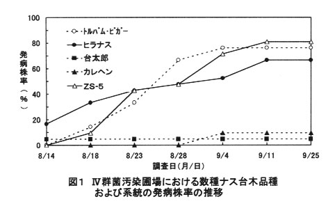 高知県のナス栽培において、青枯病は難防除病害とされ、毎年4~5割の圃場で発生している。本病の防除対策として「トルバム・ビガー」や「カレヘン」などの抵抗性台木が利用されていたが、これらの効果は不十分で、より高い効果を示す抵抗性台木が望まれていた。