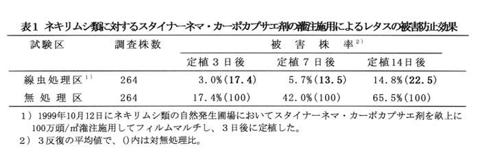 昆虫寄生性線虫スタイナーネマ・カーポカプサエ剤によるレタスのネキリムシ類防除