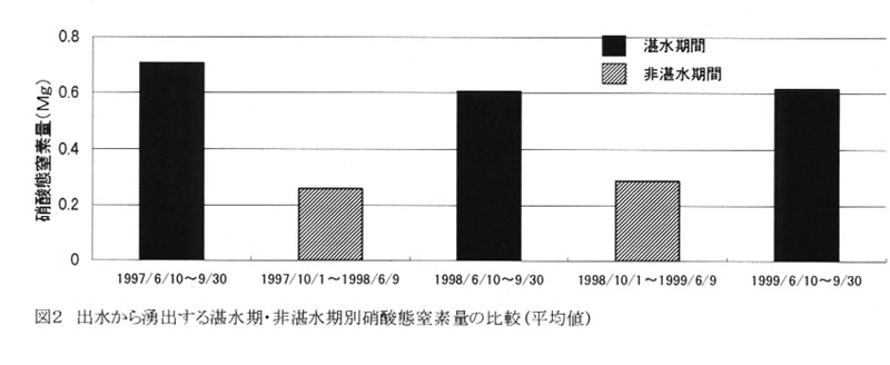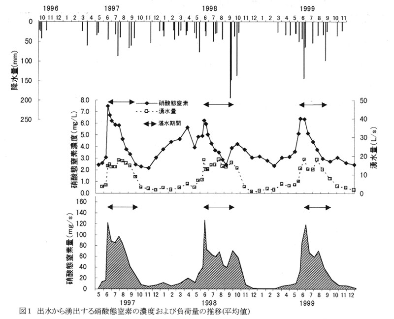 年間に出水から湧出する硝酸態窒素総量は、その3分の2が湛水期間内に集中している。