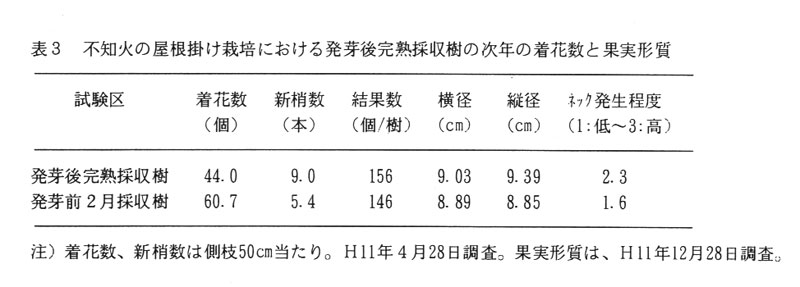 不知火の発芽後採収による新鮮完熟果生産と樹勢強化