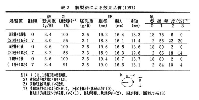 そこで、調製作業における殻果の品質改善について検討した。