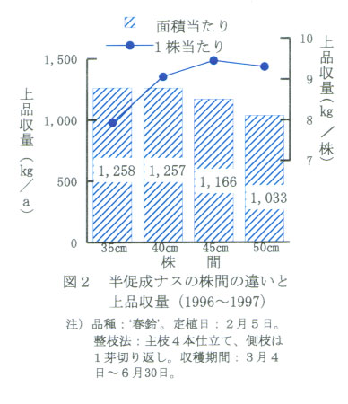 定植時期および収穫期間:1月5日前後に定植して、6月末に収穫打ち切りとする。