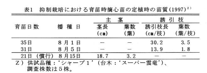 穂木には‘シャープ1’、台木には‘スーパー雲竜’を用いた試験結果である。