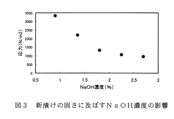 )、ともに商品価値を低下させるので従来の処理条件である2.0%前後の濃度がよい。また果肉の固さとしてレオメータを用いて圧縮応力を測定した場合、NaOH濃度が高いほど低い値を示す。(