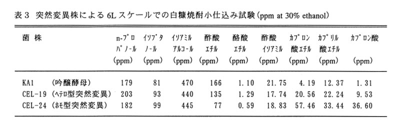 清酒酵母は、突然変異がヘテロ型からホモ型になることによって、カプロン酸エチルの生成が高くなる株があり、これを用いることにより、白糠焼酎の香味の改善を図られる(