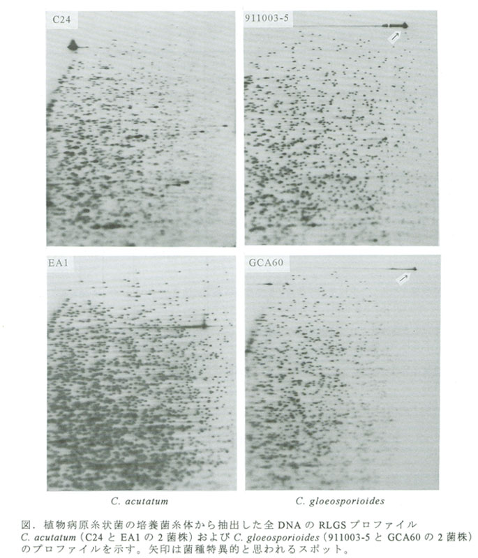 RLGSスポットに対応するDNA断片のクローニングが可能になっているので,病害防除研究においては,病原糸状菌のレース判定や生態把握のためのマーカーの開発,病原性や薬剤耐性に関連する遺伝子の単離等への利用が期待できる。