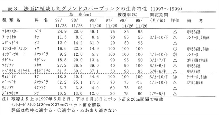 そこで、樹園地の下草管理に適したグランドカバープランツ(地被植物)類について検討する。