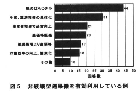 非破壊型選果機を有効利用し、優良な産地となるためには、①非破壊型選果機で厳選した高品質果実を特選商品として販売し、②一箱内の果実の味のばらつきを少なくするとともに、③選果場の効率化・作業の簡素化を行い、④品質の悪い園地、生産者へは、品種更新、マルチ栽培、排水改善などの的確な指導を行う必要がある(