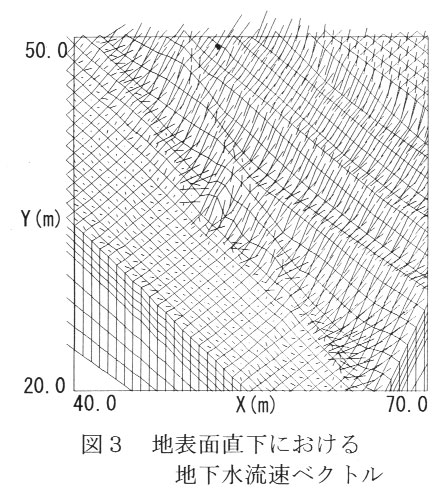 傾斜地の複雑地形に対応して豪雨時の地下水流動(