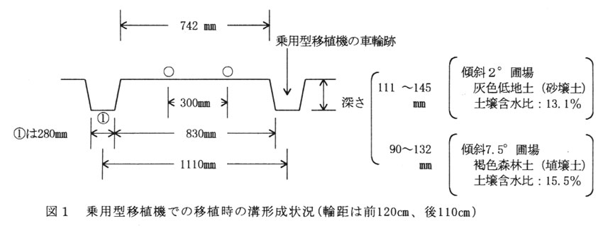 そこで、耕うんから移植までの作業を迅速化するため、乗用型移植機の車輪跡を利用したうね立て同時移植技術を検討した。