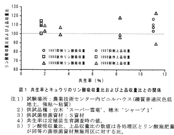 を混入すると高まる。また、VA菌根菌を共生させてもキュウリの収量は必ずしも向上しない。