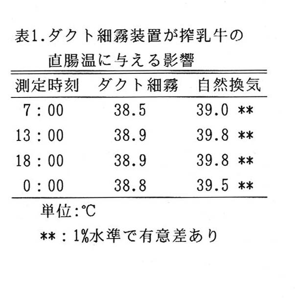 本技術(ダクト細霧装置)は乳牛舎において