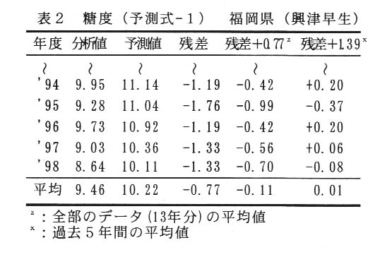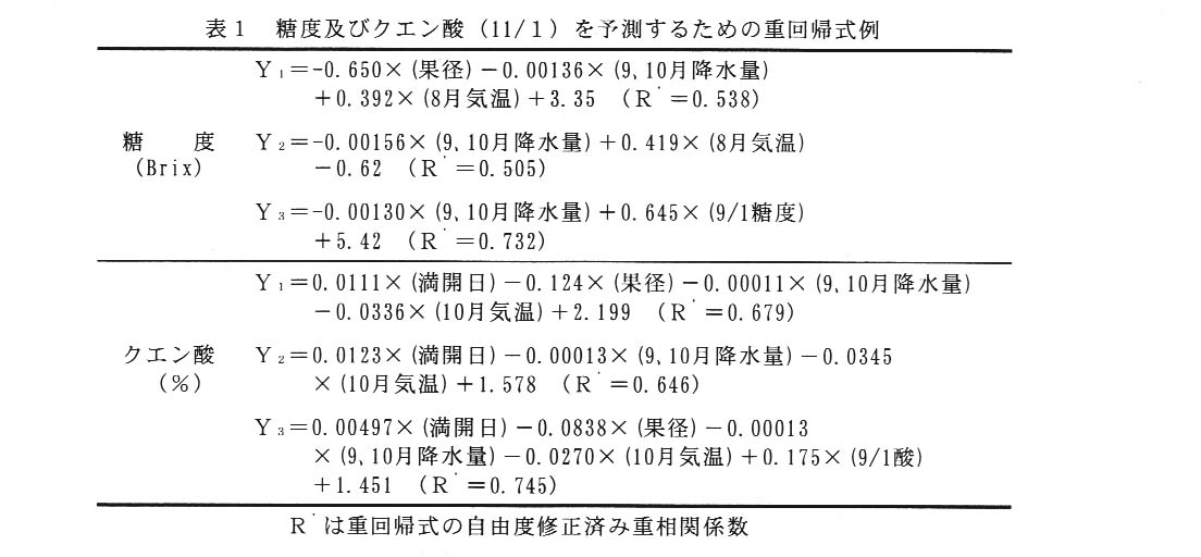 早生温州の果実品質予測のための重回帰式の作成,園学雑,69(別2),272,2000