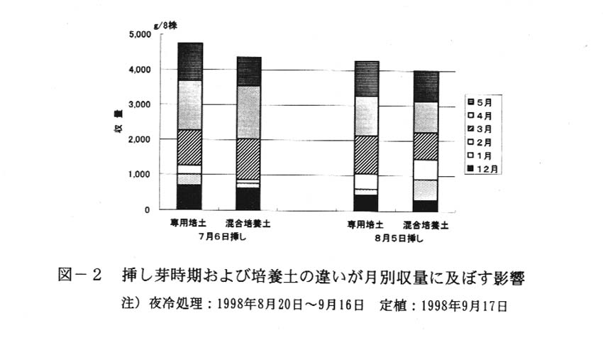 初期から収量を確保するためには、挿し芽時期が遅れないように留意する。