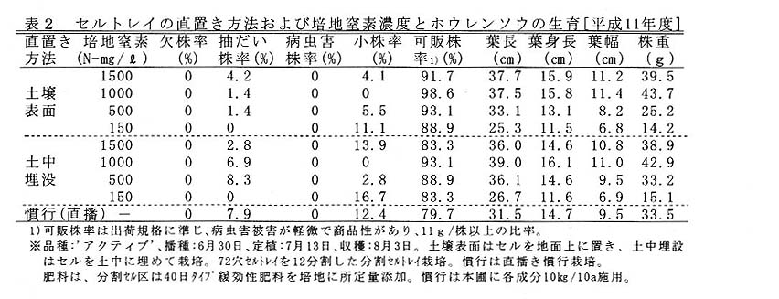 セルトレイを本圃へ直置きする場合は、埋没させない方が可販株率が高い(