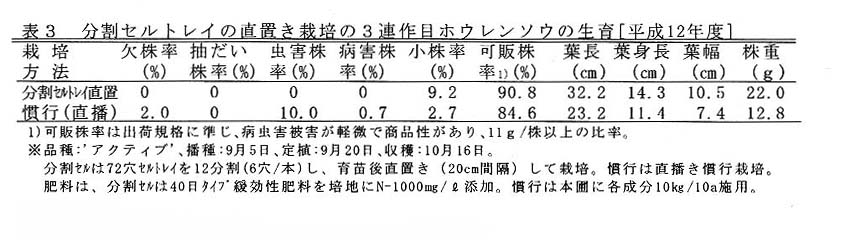 分割セルトレイで育苗した苗を、セルトレイのまま本圃に直置きし栽培すると、欠株率も低く(