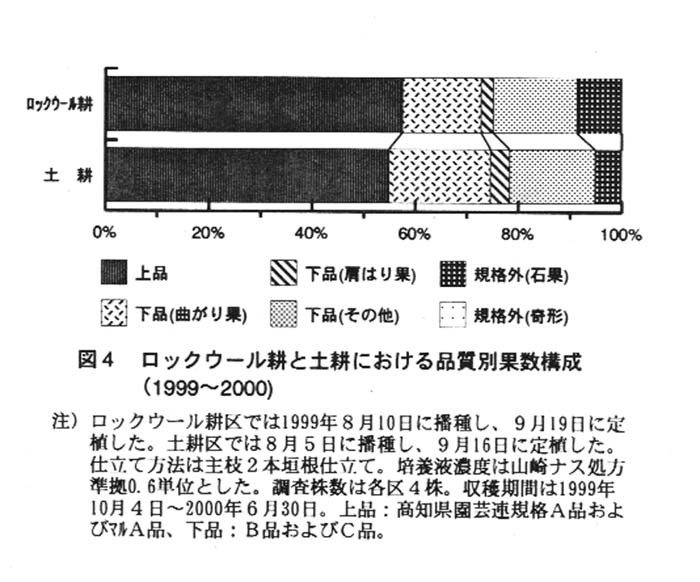 特徴:土耕栽培に比べて、上品収量が著しく多い(