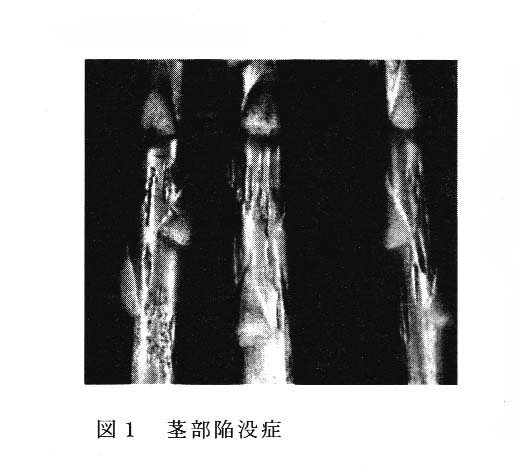 障害は主に茎の中央部がへこみ、その後褐変するものである(