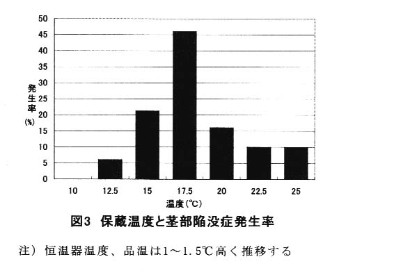 障害は、保蔵温度が12.5℃から25℃で発生するが、特に15~20℃で発生が多い