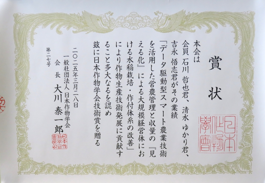 日本作物学会第260回講演会にて、石川哲也氏が受賞記念講演を行いました。