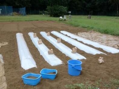 2025年9月4日、観音台第3事業場組換え植物隔離ほ場*にて、ゲノム編集技術により得られた病害抵抗性バレイショ(ジャガイモ)(以下、本ゲノム編集ジャガイモ)の植え付けを行いました。