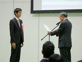 授与式の様子(左が神戸上級研究員、右は本川 一善 農林水産技術会議会長)