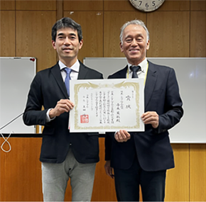 授与後の様子(左が寺本グループ長補佐、右は信州大学・玉田 シルク学会長)