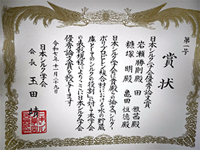 環境問題が世界的に深刻化する中、石油由来の汎用樹脂の一部を天然由来材料へ置き換えることは、自動車産業においても喫緊の課題となっている。しかし、汎用樹脂と天然物は必ずしも相性が良いとは言えず、樹脂の一部を天然物に置換することは容易ではなかった。とりわけ、自動車産業で最も多用される樹脂であるポリプロピレンにおいて、その一部を天然物であるシルクに置き換えることができれば有用であるが、剪断したシルク繊維をそのままポリプロピレンと混合しても均一に分散しないという課題が存在していた。本研究では、混練・射出成形時の温度を特定の範囲に制御することで、シルク側鎖の水酸基を脱水熱分解させ、そこで発生する水分子を利用してシルクをポリプロピレン中に均一分散させることに成功した。本論文は、この技術を科学的データに基づき学術的にまとめたものであり、シルクの現象理解と新たな活用法が高く評価され、日本シルク学会2025年度の優秀論文賞に選定された。