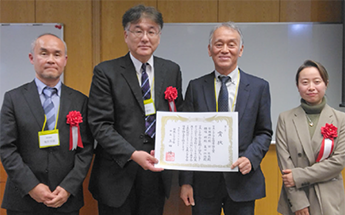 授与後の様子(左から亀田グループ長、デンソー・岩瀬氏、信州大学・玉田 シルク学会長、田)