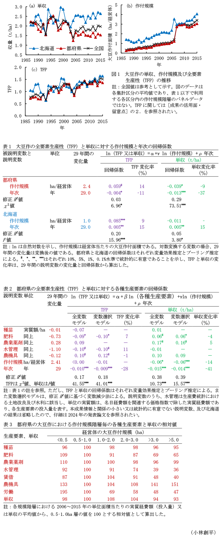 - キーワード : 大豆、作付規模、単収、生産効率、全要素生産性