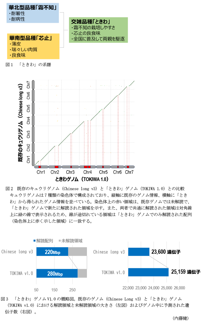 - キーワード : キュウリ、ときわ、ゲノム、ロングリードシーケンサー、品種育成