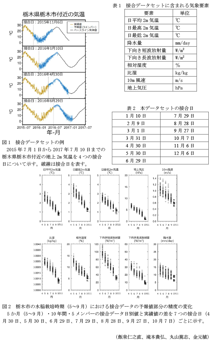 - 本データセットには10種類の気象要素が含まれており(表1)、生育・収量予測をはじめとして農業分野での広範な応用が可能である。