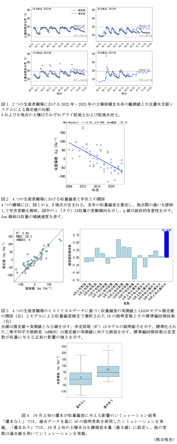 - キーワード : 大豆灌水支援システム、丹波黒大豆、収量変動、土壌水分、ヒストリカルデータ