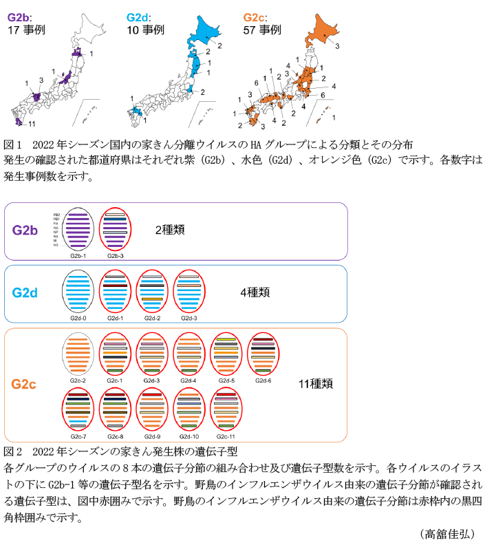 - G2bとG2dは、2021年シーズンにも国内で確認されているグループである。G2cは2022年シーズンに国内で初めて確認されたグループで、2021年シーズンに近隣諸国で分離された株と同じグループである。